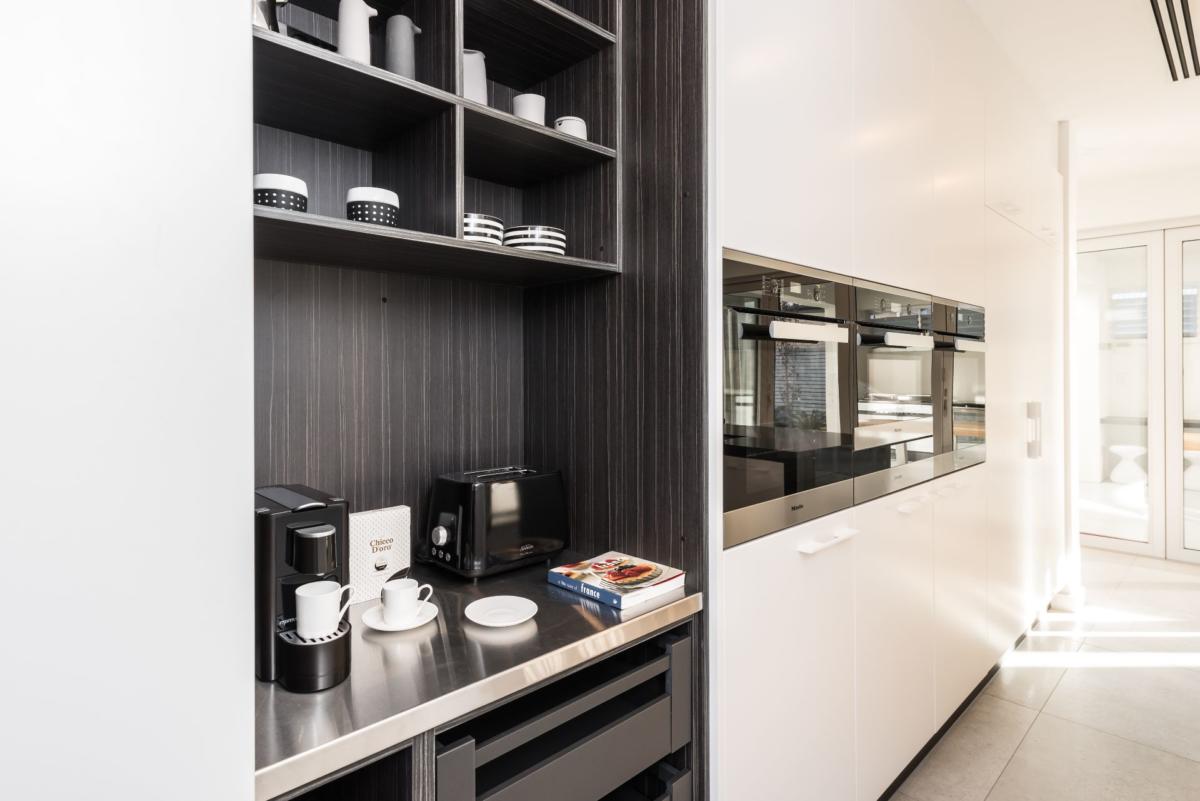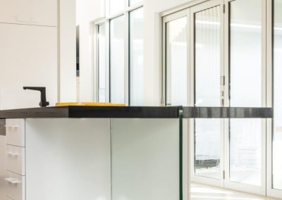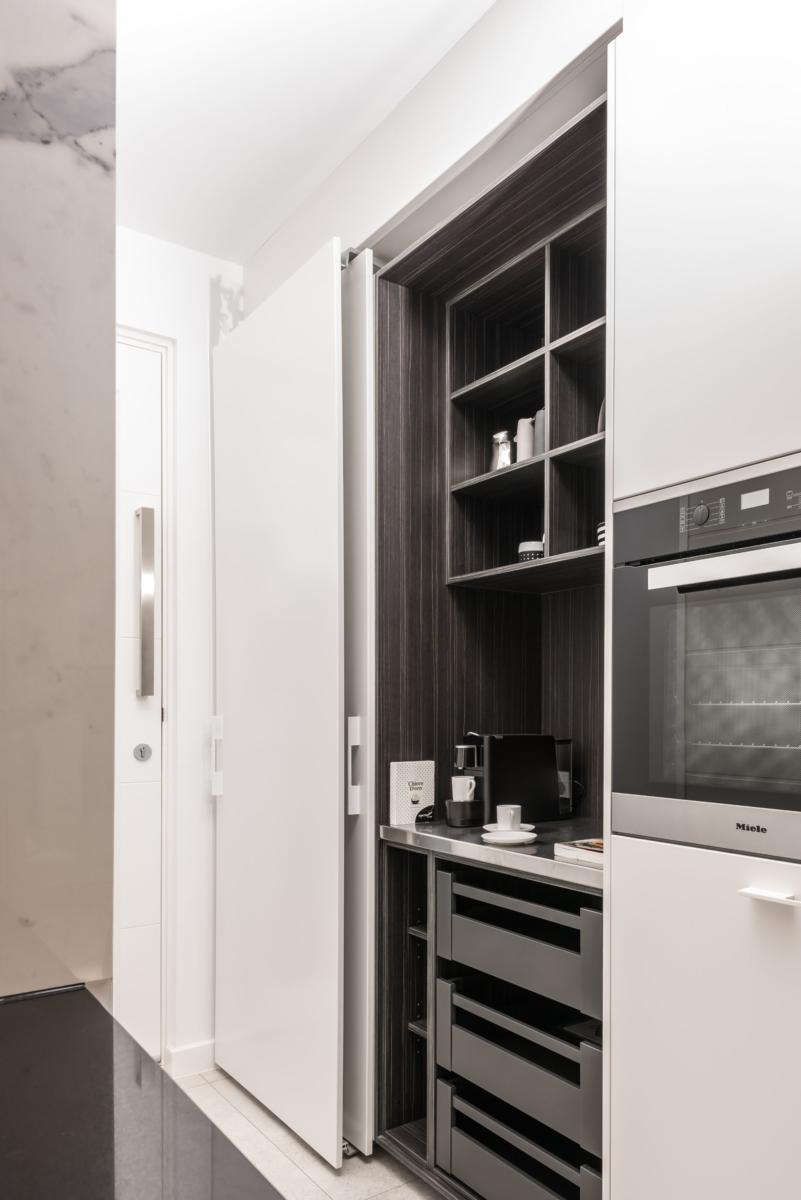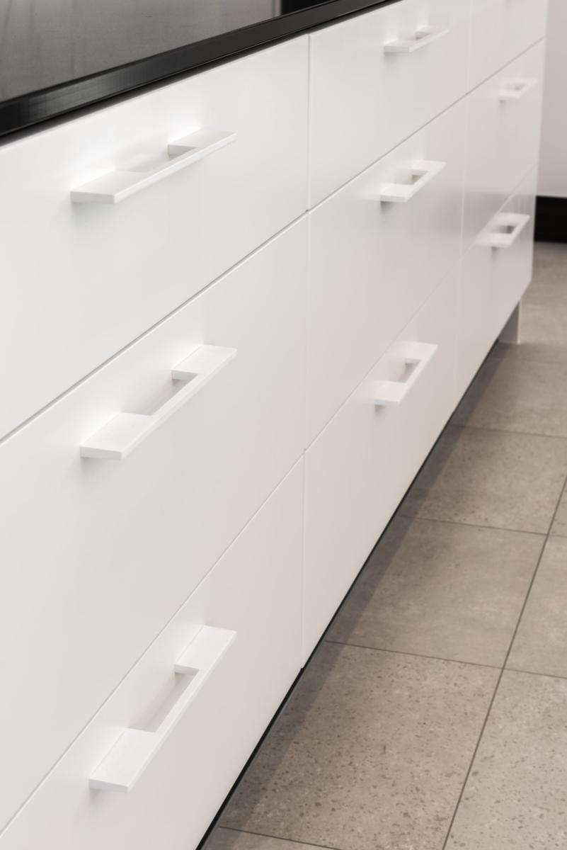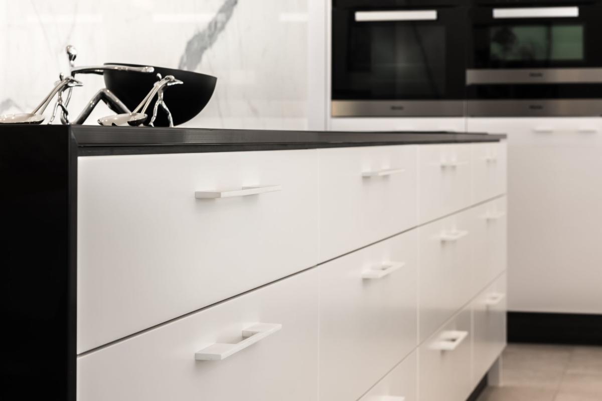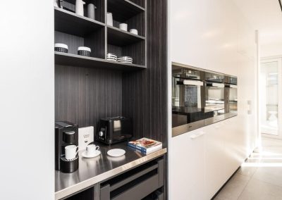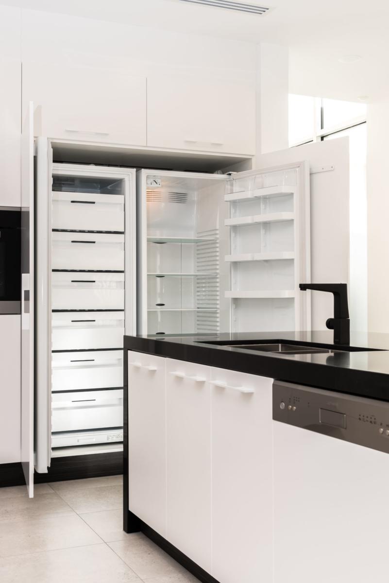 This stunning entertainer’s kitchen oozes style – the monochrome colour palette and marble and glass features perfectly complement the stone benchtop in jet black and two-pack satin finish. Designed with functionality in mind.